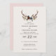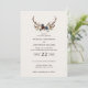 Invitación a una boda rústica con flores y estag antlers. Con hermosos detalles de acuarela. Esta moderna invitación a la boda le permitirá fijar el estilo de su gran día.