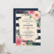 La invitación floral del boho rústico que ofrecía rayas sofisticadas de la marina de guerra adornó con los rosas y el follaje enormes de la acuarela