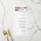 Esta floral tropical colorida | El menú de la cena boda es perfecto para su boda boho moderno, verde, violeta y melocotón. El diseño cuenta con un elegante ramo de vegetación acuática clásica y flores que pueden incluir eucalipto verde salado, protea malva y roja, hibiscos rosa rubor, ave paradisíaca naranja y azul, y hojas de palmera verde oscuro. El diseño es ideal para un boda de viajes sencillo, creativo y único para primavera, verano, otoño o invierno. Encontrará otro papel de boda que coincida o coordine el resto de la colección.