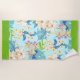 El diseño de las toallas de playa se caracteriza por sus bonitas flores y sus grandes hojas tropicales. El borde superior e inferior son de color verde oscuro.