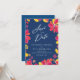Este divertido y elegante petite (4.5 x 6.25") ahorra la invitación de fecha con coloridas flores ilustradas de estilo tropical a lo largo de la frontera. El fondo es de color azul marino, pero puede cambiarse a cualquier color que le guste. Ideal para un luau, una isla tropical o un evento de ducha de boda de estilo hawaiano. El texto puede ser personalizado para su ocasión especial que preceda al boda.