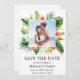 Acuarela moderna Floral tropical, vegetación y hojas de palma ahorran la tarjeta de Invitación de compromiso fotográfico de fecha