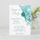 Dulce 16 Invitación a la fiesta de cumpleaños con una combinación floral verde azulada y azul de remolinos en la vanguardia de este diseño elegante y texto de personalizable completo para personalizar su dulce invitación a dieciséis personas.