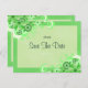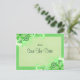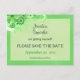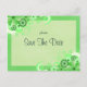 © Sunny Mars Designs - Floral Hibiscus: Light Pastel Green Wedding Save The Date Invitación Postales - Esta tarjeta posteada por boda de personalizable presenta un ilustracion de una decoración floral de hibisco verde.
