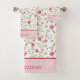 Monogramar este bonito juego de toallas de baño florales rosas y verdes. El conjunto incluye toalla de baño, toalla de mano y paño de lavado. Un gran regalo de boda o regalo para una ducha de novia o cómpralo para ti mismo para animar tu propio baño.