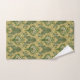 Patrón vintage elegante y ricamente detallado con ramos de flores blancas enmarcadas por medallones de oro ornamentados en un fondo verde rayado verticalmente.