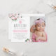 Invitación al bautismo de personalizable con foto de flores acuarelas sobre fondo de papel kraft.