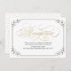 Script de caligrafía de escritura a mano elegante con marco floreado en oro clásico, negro y blanco, limpio y formal, grandes tarjetas de recepción para boda vintage, boda tradicional y boda clásica todo el año.