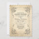 Elegante invitación de bodas vintage con modas antiguas floridas y marcos antiguos de remolinos.