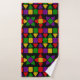Este juego de toallas tiene un diseño de historia negra de flores y filas hechas de triángulos y rectángulos.