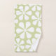 Un diseño divertido y divertido de estilo retro con un diseño abstracto de la superficie floral con detalles blancos sobre un fondo lima-verde.