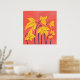 Flores abstractas posters con un ilustracion vectorial geométrico de plantas vibrantes de bonito amarillo con tallos azul oscuro sobre fondo rosa coral. Este arte floral decorativo aporta un toque de primavera y verano.