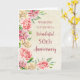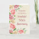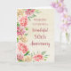 Feliz 50 aniversario boda con hermoso patrón de flores color agua rosado y verso sentimental.