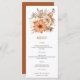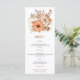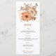 Flores acuáticas otoñales Menú Boda Foliage. Hermosas flores acuáticas y follaje en tonos marrones y crema otoñales, con un fondo de terracota marrón en la parte posterior. La tipografía es elegante en minúsculas y fácilmente personalizada a tus propios detalles.
