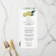 flores doradas amarillas y hojas verdes menú boda Los detalles purpurinas se simulan