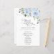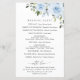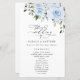 Añada un toque personal a la celebración de su boda con estos artículos fiestas elegantes y memorables. El diseño presenta flores de color azul polvoriento y vegetación sobre fondo blanco.