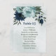 Tarjeta de número de la tabla de asientos única con flores azules y navales polvorientas y hojas verdes. PARA OBTENER MÁS PRODUCTOS COINCIDENTES, haga clic en la colección superior o póngase en contacto conmigo.