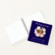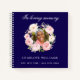 Un libro de invitados para un funeral o funeral. Un fondo azul oscuro clásico, decorado con una corona floral rosa y blanca. Personalice y agregue una foto, nombre y fechas.