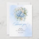 Tarjeta de agradecimiento de boda boho con flores de acuarela de hortensia azul y follaje de eucalipto, impresa profesionalmente por Zazzle en cartulina premium con detalles nítidos, color rico y acabado elegante suave.