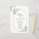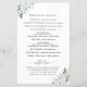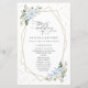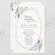 Añada un toque personal a la celebración de su boda con estos artículos fiestas elegantes y memorables. El diseño presenta flores de color azul y blanco, vegetación, confeti dorado y marco dorado sobre fondo blanco.