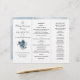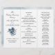 Programa de boda triple plegado con flores color azul índigo con hojas. Nota: cambiar el tipo de papel puede dificultar el plegado del programa.
