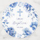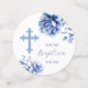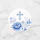 Flores azules mesa de bautismo confetti