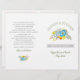 Flores azules del folclore moderno estilo librillo floral plegado ceremonia boda y programa fiesta con flores de estilo bonito en azul claro y amarillo con hojas verdes, un banner gris y texto curvo con un tipo de letra caprichosa que parece escritura a mano. Este diseño de plantilla, fresco y moderno, forma parte de un conjunto boda y es completamente personalizable. Perfecto para una primavera rústica o boda de verano. Doblarlo en el centro para tener un programa de bodas de estilo plegado. Elija sólo este tipo de valor de papel a medida que se dobla bien.