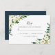 Tarjeta de respuesta de boda moderna con flores blancas elegantes para boda de todas las estaciones