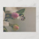 Fotografía macro. Refracción de flores blancas en postal de gota de agua.