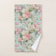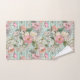 Un hermoso patrón victoriano floral vintage rosa blanco y azul con partituras en este juego de toallas de baño.