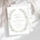 La elegancia y la elegancia de esta elegante invitación a la ducha nupcial, con refinados ilustraciones acuáticos de exuberante vegetación, hojas de eucalipto y delicadas flores blancas. Una elección perfecta para una celebración de primavera o verano.