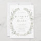 Experimente un toque sofisticado con esta refinada invitación a la boda, que incluye elegantes ilustraciones acuáticos de exuberante vegetación, hojas de eucalipto y delicados florecimiento de flores blancas. Una selección ideal para una celebración de primavera o verano.