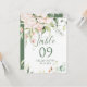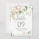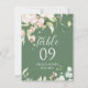 Borde de rosas blancas y rosadas pastel para un número de mesa de boda, fiesta de compromiso a doble cara con colores reversibles blancos y verde oliva.