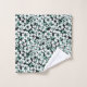 Flores blancas y turquesas sobre un fondo negro. Pequeña huella floral.