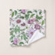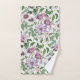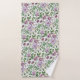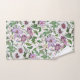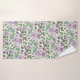 Se trata de un patrón de acuarela vintage de flores lilas, moradas y blancas con hojas verdes sobre un fondo blanco.