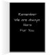 Una flor artística brillante pintando en una tarjeta de condolencia. El texto dice "Pensando en ti" El texto interno se lee en tiempos como este recuerden que siempre estaremos aquí por ti. Esta tarjeta también sería adecuada para tener buenas ideas.