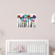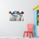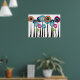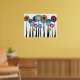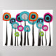 Flores caprichosas Art Poster IV, flores brillantes y llamativas de colores en fuschia, azul brillante, verde cal, naranja y rojo con tallos negros.