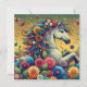 Hermosas flores coloridas y un hermoso caballo blanco. Arte de IA caprichoso.