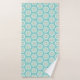 Patrón geométrico de las grandes flores en forma de círculo en tonos crema y blanco, con puntos turquesa y rosa sobre un fondo turquesa.