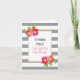 Tarjeta de nota de agradecimiento de boda con flores de acuarela y rayas grises y blancas. Destacan flores tropicales de acuarela en rosa y púrpura combinadas con un patrón de rayas en gris y blanco que adornan esta encantadora tarjeta. Tu foto está en el interior.