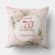 Celebre 70 años con estilo con esta almohada dorada rosa brillante. Con flores de acuarela rosa polvoriento, rosa claro y rosa suave, follaje exuberante, acentos de eucalipto y un marco dorado, este diseño boho, floral y bohemio es un regalo perfecto para una almohada de cumpleaños 70.