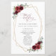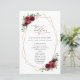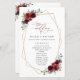 Añada un toque personal a la celebración de su boda con estos artículos fiestas elegantes y memorables. El diseño presenta flores color burdeos, vegetación y marco dorado sobre fondo blanco.