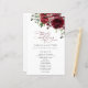 Añada un toque personal a la celebración de su boda con estos artículos fiestas elegantes y memorables. El diseño presenta flores de color burdeos y vegetación sobre fondo blanco.