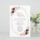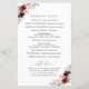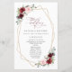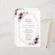 Añada un toque personal a la celebración de su boda con estos artículos fiestas elegantes y memorables. El diseño presenta flores de color burdeos y rosa oscuro, vegetación y marco dorado sobre fondo blanco.