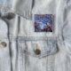 Este botón del pinback tiene una foto de flores de cerezo florecientes en la C.C. de Washington con el monumento de Washington en el fondo.
