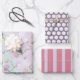Un hermoso árbol de cerezo florido con aves grises y las correspondientes rayas y puntos de polka.