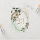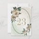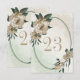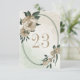 Tarjeta de número de mesa única con románticas flores de champán y hojas verdes en un hermoso marco oval geométrico.