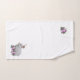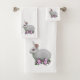 Flores de conejo blanco y manzana en un juego blanco de toallas de baño. Conejo sólo de un lado. Sólo las flores son bicicletas. Los conejos simbolizan la longevidad, abundancia y buena fortuna.