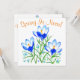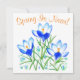Este automóvil plano muestra una imagen de pintura acrílica de tres crocus sobre fondo blanco.