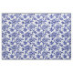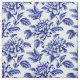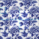 Este tejido presenta un diseño de dahlia azul y blanco con motivos de tela de jouy.